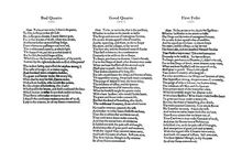 Comparison of the 'To be, or not to be' soliloquy in the first three editions of Hamlet, showing the varying quality of the text in the Bad Quarto, the Good Quarto and the First Folio