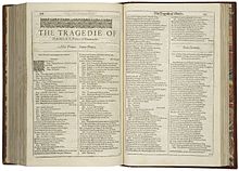The first page of the First Folio printing of Hamlet, 1623