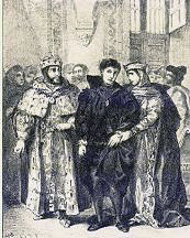Many of the earlier legendary elements are interwoven in the 13th-century "Life of Amleth" (Latin: Vita Amlethi) by Saxo Grammaticus, part of Gesta Danorum.[11] Written in Latin, it reflects classical Roman concepts of virtue and heroism, and was widely available in Shakespeare's day.[12] Significant parallels include the prince feigning madness, his mother's hasty marriage to the usurper, the prince killing a hidden spy, and the prince substituting the execution of two retainers for his own. A reasonably faithful version of Saxo's story was translated into French in 1570 by François de Belleforest, in his Histoires tragiques.[13] Belleforest embellished Saxo's text substantially, almost doubling its length, and introduced the hero's melancholy.[14]