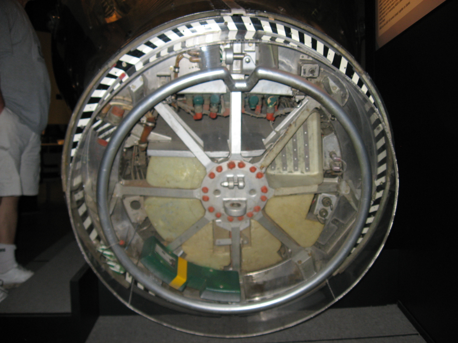 Some items of MOL equipment made their way to museums. The spacecraft used in the only flight of the MOL program is on display at the Air Force Space and Missile Museum at Cape Canaveral Air Force Station.[145] A Gemini B spacecraft used for ground-based testing is on display at the National Museum of the United States Air Force at Wright-Patterson Air Force Base in Dayton, Ohio (on loan from the National Air and Space Museum). Like the other Gemini B capsule, it is differentiated from the NASA Gemini spacecraft by the words "U.S. AIR FORCE" painted on it, with accompanying insignia, and by the circular hatch cut through its heat shield.[146] Two MH-7 training space suits from the MOL program were discovered in a locked room in the Cape Canaveral Air Force Station Launch Complex 5 museum on Cape Canaveral in 2005.[147] Crippen donated his MOL space suit to the National Air and Space Museum in 2017.[148][149]