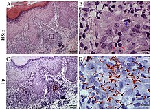- ^ Lukehart, Sheila; Cruz, Adriana R.; Ramirez, Lady G.; Zuluaga, Ana V.; Pillay, Allan; Abreu, Christine; Valencia, Carlos A.; La Vake, Carson; Cervantes, Jorge L.; Dunham-Ems, Star; Cartun, Richard; Mavilio, Domenico; Radolf, Justin D.; Salazar, Juan C. (2012). "Immune Evasion and Recognition of the Syphilis Spirochete in Blood and Skin of Secondary Syphilis Patients: Two Immunologically Distinct Compartments". PLOS Neglected Tropical Diseases. 6 (7): e1717. doi:10.1371/journal.pntd.0001717. ISSN 1935-2735. PMC 3398964. PMID 22816000.